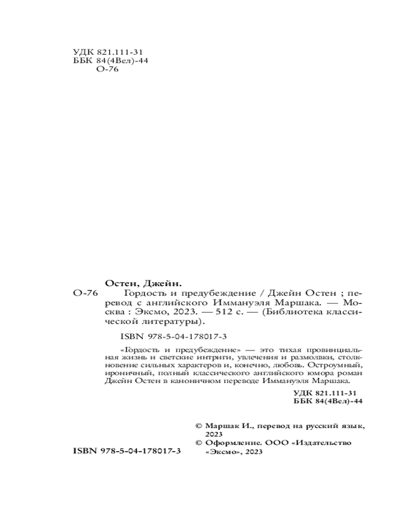 В данный момент этот товар отсутствует в продаже. Возможно, у нас найдется аналогичный или похожий товар здесь. Серия: Библиотека классической литературы «Гордость и предубеждение» — самый известный из шести романов английской писательницы Джейн Остен. В неторопливом повествовании о жизни небогатого провинциального семейства читатели находят то, что им по душе: романтические истории и светские интриги, философские размышления и противостояние сильных характеров — и, конечно, непревзойдённый английский юмор. Не случайно роман был экранизирован 8 раз, не считая кинофильмов, созданных по мотивам произведения. Но кто из героев обретает в конце концов истинное счастье, каждый из нас до сих пор решает по-своему. «Библиотека классической литературы» — книги, которые помогают найти ответы на самые сложные вопросы! |