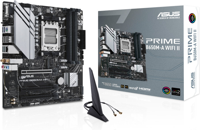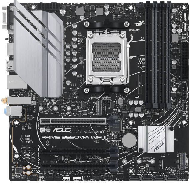 Компактный форм-фактор Micro-ATX позволяет рационально использовать пространство в системном блоке. Для беспроводного доступа к Интернету в плате Asus Prime B650M-A WIFI II реализован модуль WI-FI 6 (802.11ax). Стабильное проводное подключение обеспечивает встроенный адаптер LAN со скоростью 2.5 Гбит/с. Алюминиевые радиаторы поддерживают низкую температуру нагрева аппаратных комплектующих.