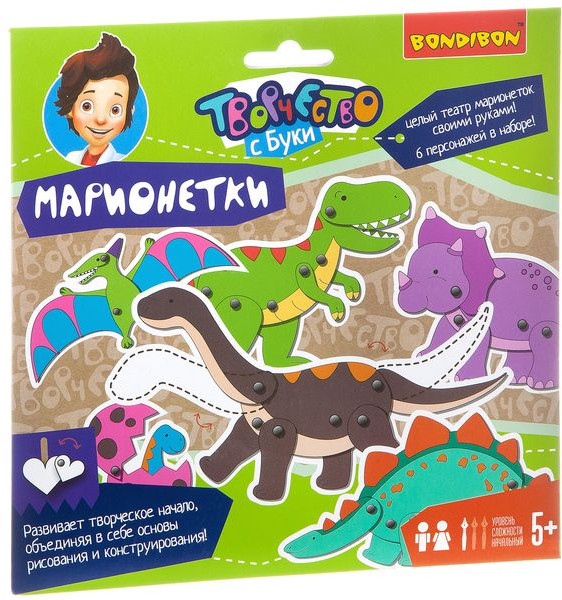 Bondibon Набор для изготовления марионеток «Динозавры»В данный момент этот товар отсутствует в продаже. Возможно, у нас найдется аналогичный или похожий товар здесь. Серия: Творчество с Буки Это оригинальный набор для детского творчества и увлекательная игра одновременно! Из разнообразных ярких деталей и разноцветных кнопок ваш ребенок с огромным удовольствием составит 6 фигурок динозавров. Лапы и крылья динозавров подвижные, что делает игру еще более динамичной и занимательной. |
