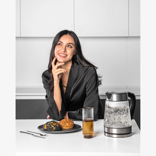 Колба чайника выполнена из высококачественного и прочного стекла. Отсутствие контакта пластика с водой сохраняет естественный вкус воды или напитков.