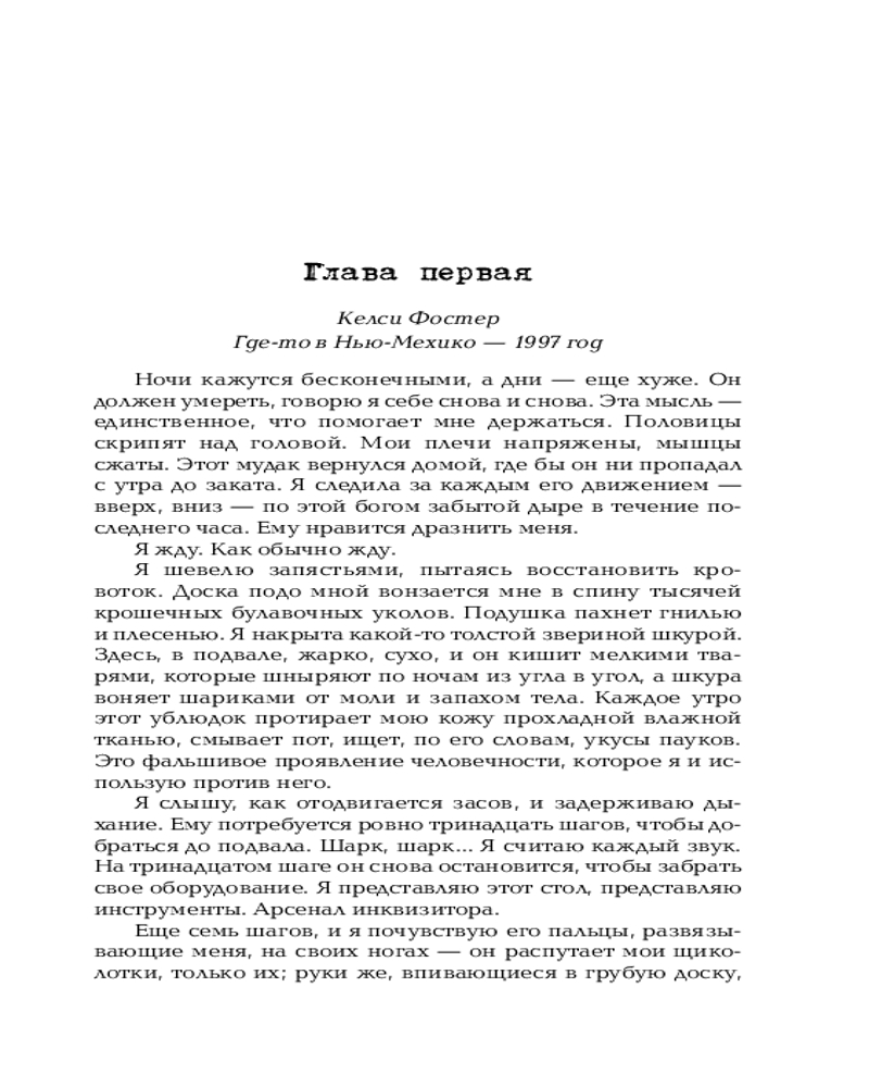 💳 Оплатить за товар можно при получении 🇰🇿 Есть бесплатная доставка по Казахстану от 1 дня 🎁 Копите бонусы с каждой покупки Серия: Анатомия смерти В 1997 году дочь Евы Фостер, Келси, убегает в Нью-Мексико и бесследно исчезает. Ева убеждена, что она стала жертвой серийного убийцы, который охотится на женщин в этом регионе. Тело Келси так и не было найдено. |