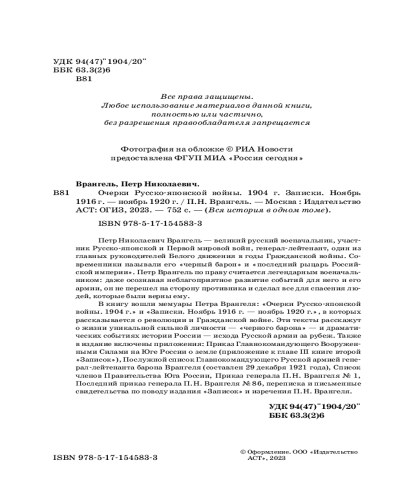 💳 Оплатить за товар можно при получении 🇰🇿 Есть бесплатная доставка по Казахстану от 1 дня 🎁 Копите бонусы с каждой покупки Серия: Вся история в одном томе Петр Николаевич Врангель — великий русский военачальник, участник Русско-японской и Первой мировой войн, генерал-лейтенант, один из главных руководителей Белого движения в годы Гражданской войны. Современники называли его «черный барон» и «последний рыцарь Российской империи». Петр Врангель по праву считается легендарным военачальником: даже осознавая неблагоприятное развитие событий для него и его армии, он не перешел на сторону противника и сделал все для спасения людей, которые были верны ему. |