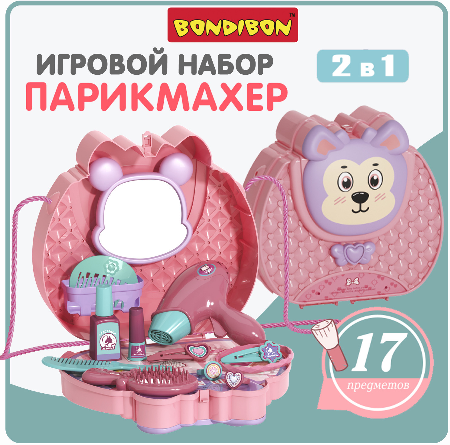 Bondibon Набор игровой «Парикмахер»В данный момент этот товар отсутствует в продаже. Возможно, у нас найдется аналогичный или похожий товар здесь. Поиграем в салон красоты с игровым набором «Парикмахер» от Bondibon! Модную сумочку-чемодан удобно брать с собой. В замечательном наборе 17 предметов для создания самых модных причесок! Рассмотрите вместе с ребенком содержимое набора. Покажите малышке, как правильно расчесывать волосы, сушить их феном, расскажите о средствах и аксессуарах для волос. |