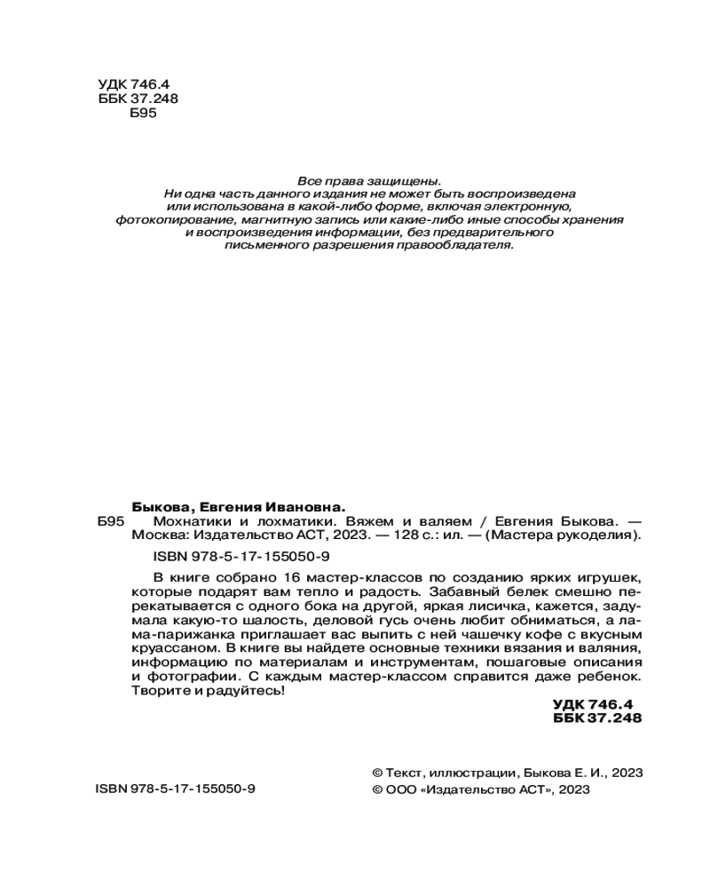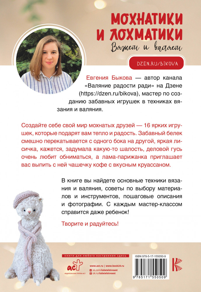 💳 Оплатить за товар можно при получении 🇰🇿 Есть бесплатная доставка по Казахстану от 1 дня 🎁 Копите бонусы с каждой покупки Серия: Мастера рукоделия Евгения Быкова — автор канала «Валяние радости ради» на Дзене (dzen.ru/bikova), мастер по созданию забавных игрушек в техниках валяния и вязания. |