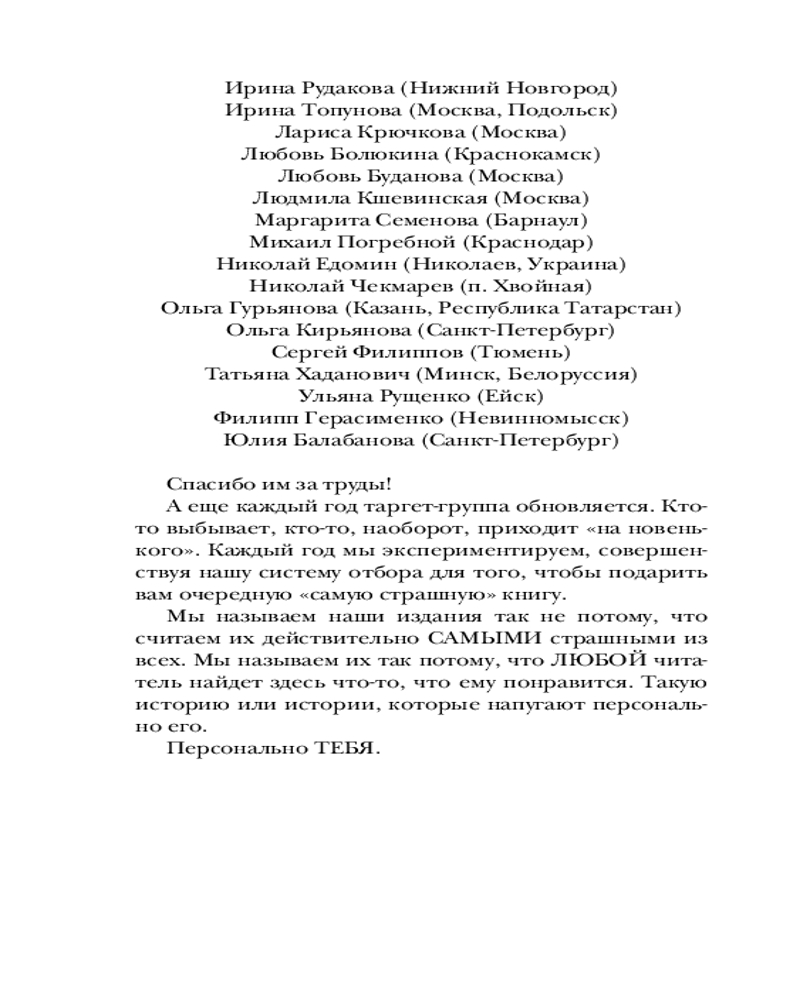 В целом неплохо, но повторного желания перечитать не возникло, до Стивена Кинга авторам далеко пока что :)