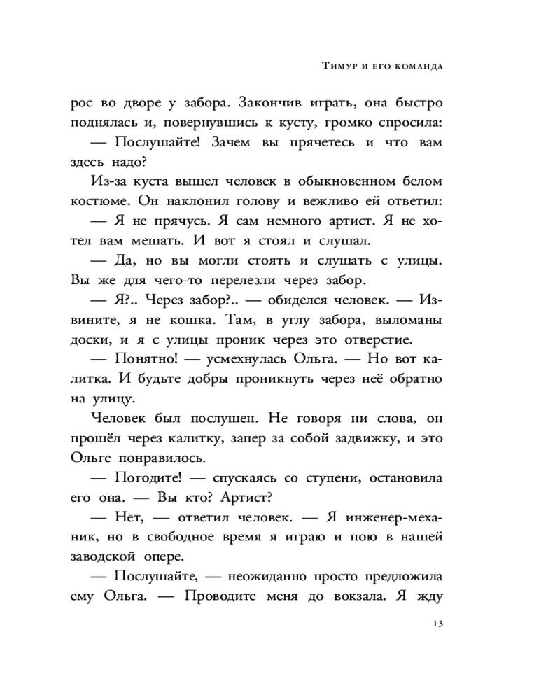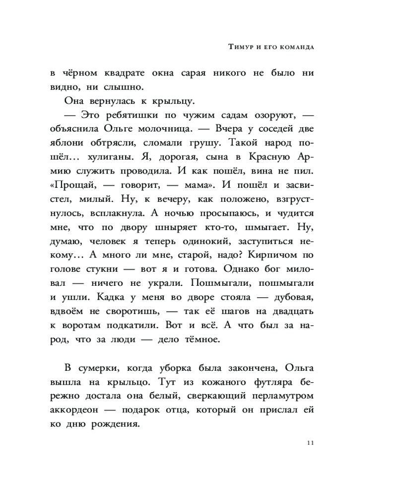 В данный момент этот товар отсутствует в продаже. Возможно, у нас найдется аналогичный или похожий товар здесь. Серия: Любимые писатели — детям Что больше всего во все времена нравится подросткам? Делать что‑то в тайне от взрослых: прятаться в секретных убежищах, собираться компанией по ночам, играть в шпионов, за кем‑нибудь следить... Тимуру тринадцать лет, и его друзьям примерно столько же. Если бы в наше время он делал хотя бы десятую часть того, что не возбранялось до Великой Отечественной войны, — его давно бы поставили на учёт в полиции.Дети по ночам носились по дачному посёлку, залезали на чужие участки, собирались на чердаке... А однажды Тимур угнал мотоцикл своего дяди и повёз на нём одну хорошую девочку на встречу с отцом... |
