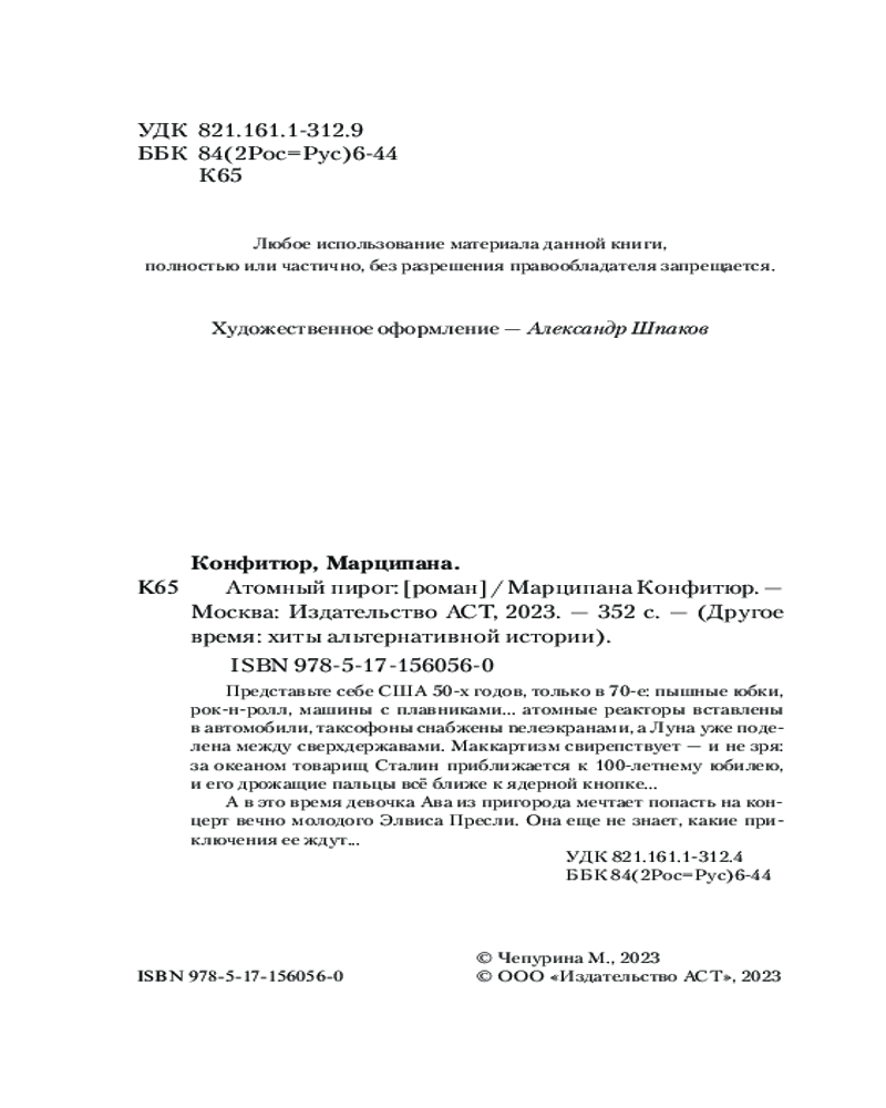 Серия: Другое время: хиты альтернативной истории Представьте себе США 50-х годов, только в 70-е: пышные юбки, рок-н-ролл, машины с «плавниками»... атомные реакторы вставлены в автомобили, таксофоны снабжены телеэкранами, а Луна уже поделена между сверхдержавами. Маккартизм свирепствует — и не зря: за океаном товарищ Сталин приближается к столетнему юбилею, и его дрожащие пальцы все ближе к ядерной кнопке... |