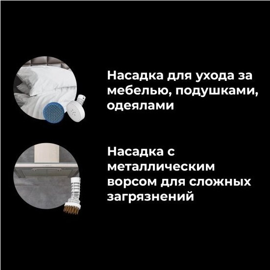 Мощный пар делает грязь податливой, а специальные насадки, помогают легко удалить загрязнения.
