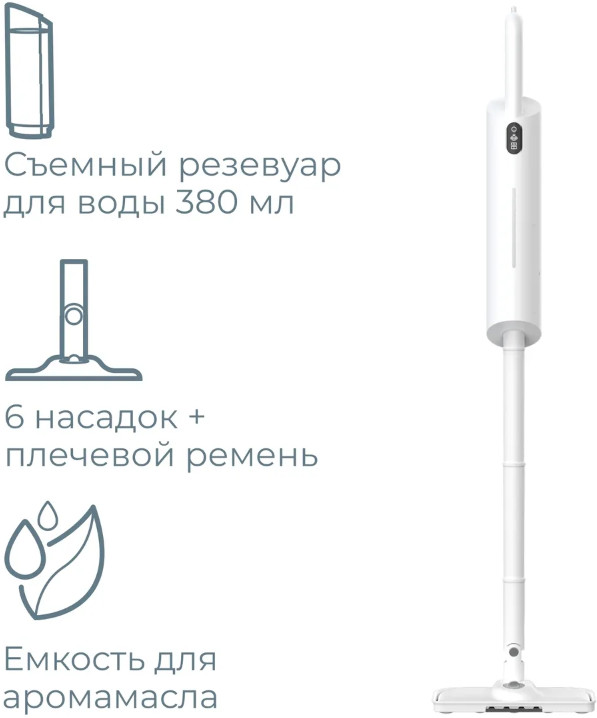 В комплект входит плечевой ремень, можно использовать паровую швабру одной рукой или держать руки свободными, что значительно облегчает работу пользователя.