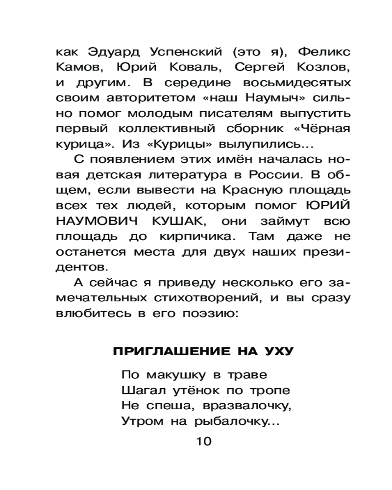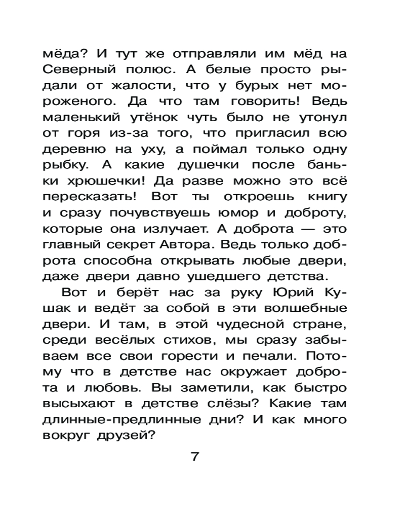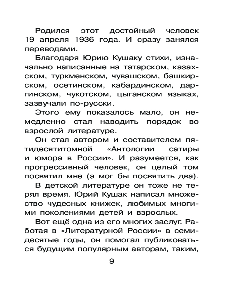 💳 Оплатить за товар можно при получении 🇰🇿 Есть бесплатная доставка по Казахстану от 1 дня 🎁 Копите бонусы с каждой покупки Серия: Лучшее дошкольное чтение Однажды Сергей Михалков, послушав стихи Юрия Кушака, сказал: «А жаль, что это не я написал»... Эта великолепная рецензия подтолкнула молодого автора в Большую Детскую Литературу. В книгу известного поэта Ю. Кушака, переводчика и составителя «Антологии сатиры и юмора в России ХХ века» вошли его лучшие стихи и переводы для детей дошкольного и младшего школьного возраста. |