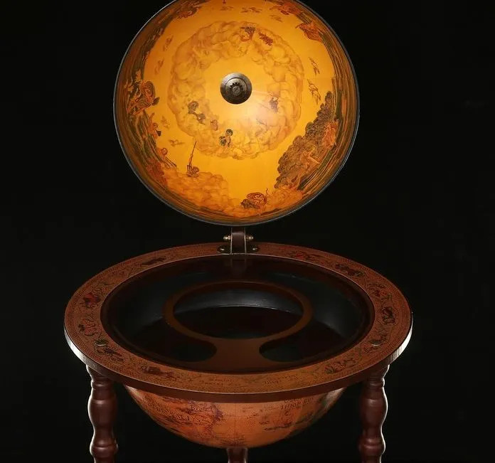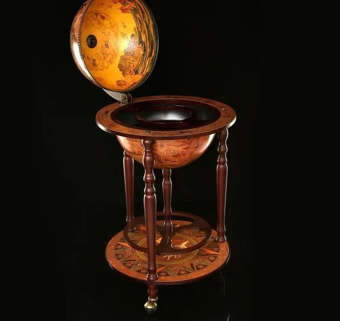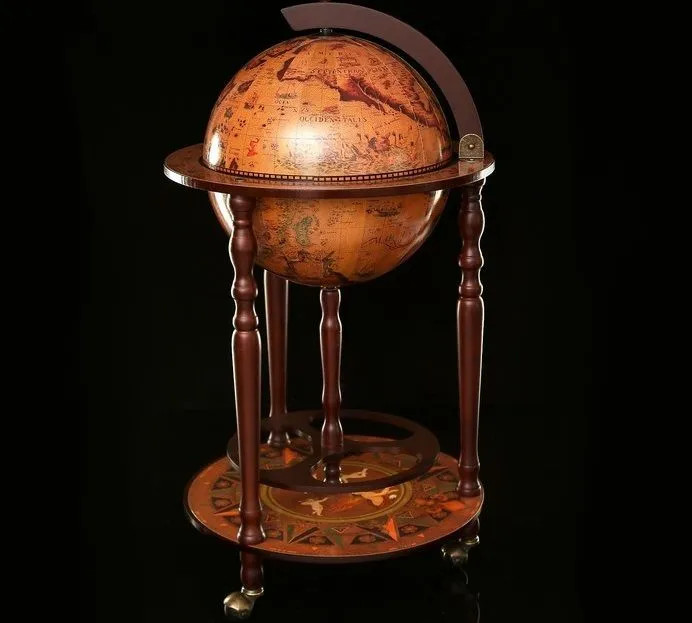 Глобус-бар «Карта странника»В данный момент этот товар отсутствует в продаже. Возможно, у нас найдется аналогичный или похожий товар здесь. Глобус-бар «Карта странника» — воплощение мечты романтиков и любителей приключений, ведь он — словно свидетель былых времен, каким-то чудом оказавшийся в XXI веке. Одним своим видом он отвлекает от рутины и навевает мысли о неизведанных странах и далеких путешествиях. Этому немало способствует и карта эпохи Великих географических открытий, изображенная на его поверхности. Если же вы откроете глобус, на его внутренней поверхности перед вами предстанет старинная карта звездного неба. Внутри глобус идеально приспособлен для хранения бутылок с прохладительными или спиртными напитками. Расположенный на элегантной деревянной подставке на колесиках и имеющий внизу дополнительную полочку, он станет прекрасным украшением интерьера. |