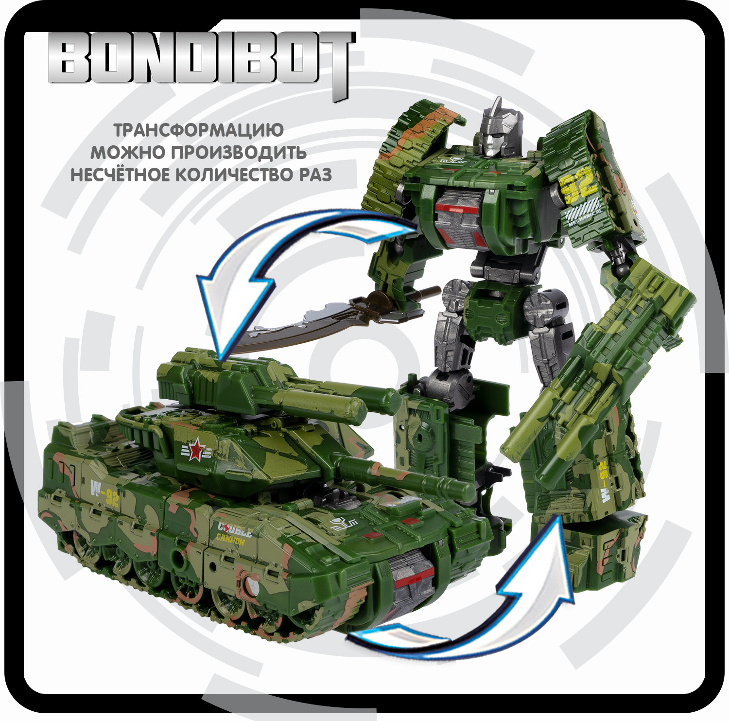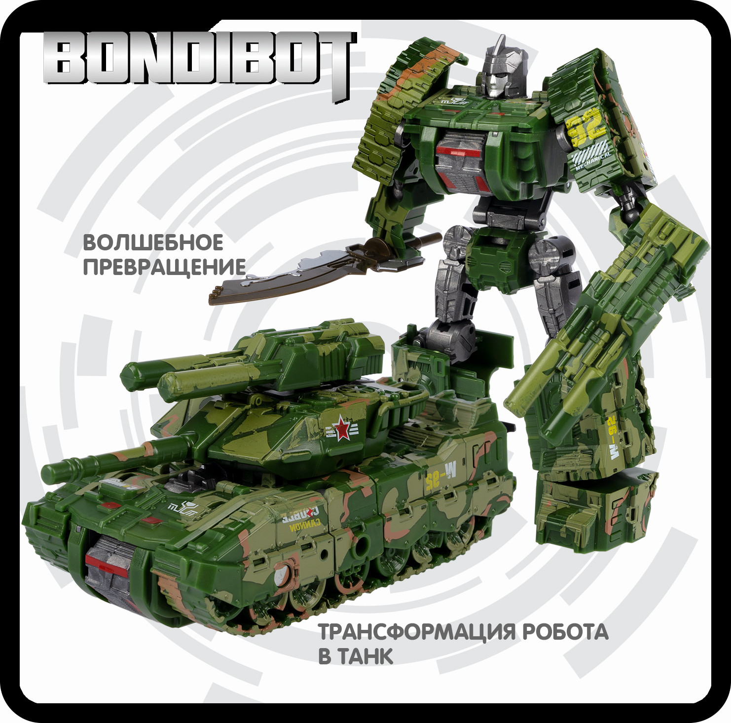 Bondibon Трансформер «Робот-танк Leopard»В данный момент этот товар отсутствует в продаже. Возможно, у нас найдется аналогичный или похожий товар здесь. Серия: Bondibot Сражайтесь вместе с трансформером Bondibot 2 в 1 Рjобот-танк Leopard цвета хаки покорит сердца мальчишек. Трансформируйте одну игрушку в другую и придумывайте различные сюжеты! Переделывайте зеленого супергероя в реалистичную модель танка и обратно сколько угодно раз! |