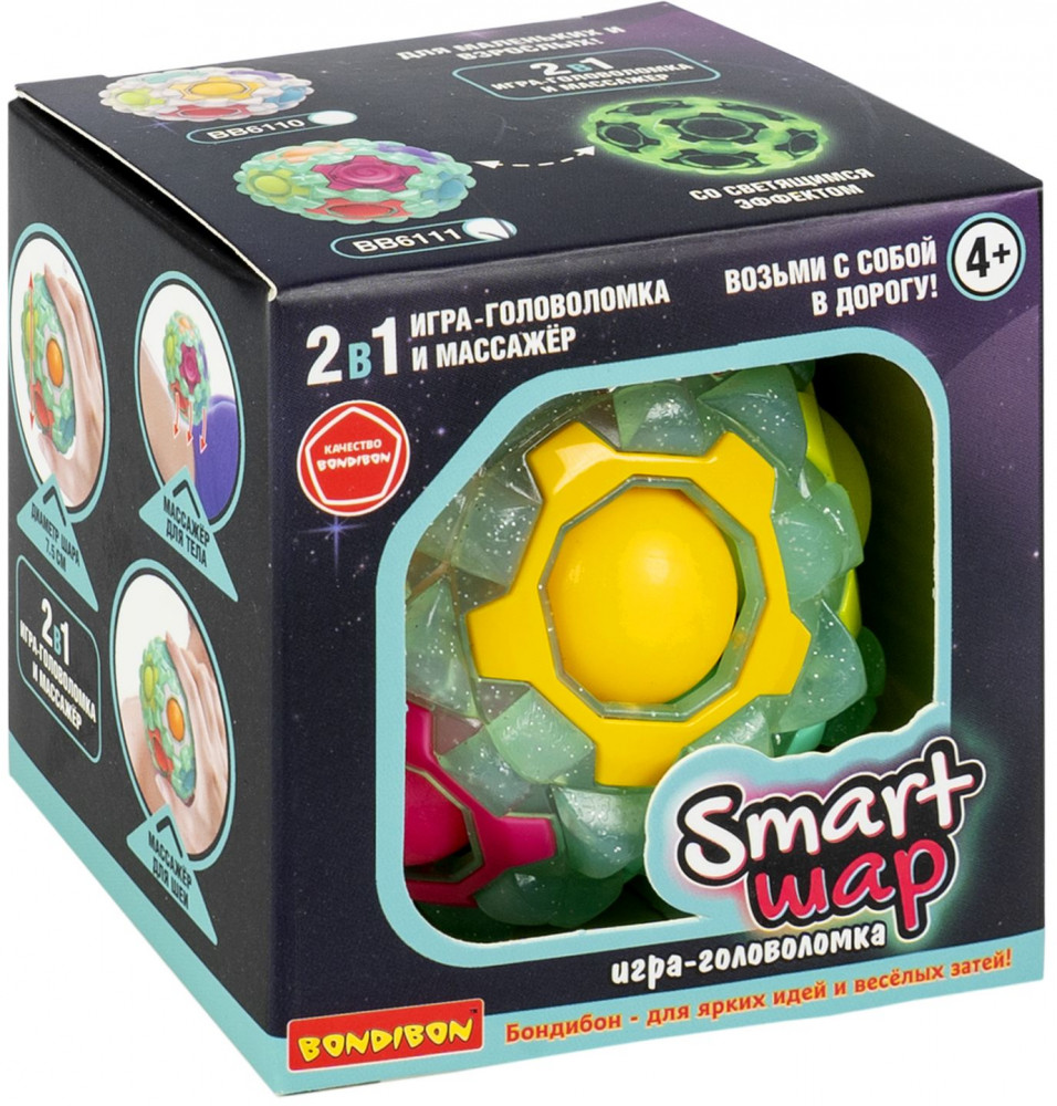 Играя, развивайте внимание, концентрацию, логическое и пространственное мышление. Сделайте глубокий массаж тела и шеи. 50 массажных контактов способствуют расслаблению мышц. А еще «Smart шар» от Бондибон — отличный тренажер координации движений и реакции у людей среднего и пожилого возраста. Такой яркий, стильный, интересный и полезный подарок порадует не только детей, родителей, но и бабушку с дедушкой!