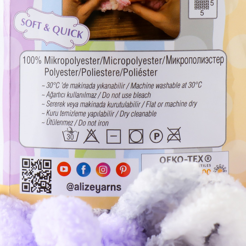 Очень нежная на ощупь, как раз вязать что-то деткам! Еще прикольно что вязать можно руками. В интернете есть очень много обзоров вариантов вязки из такой пряжи.