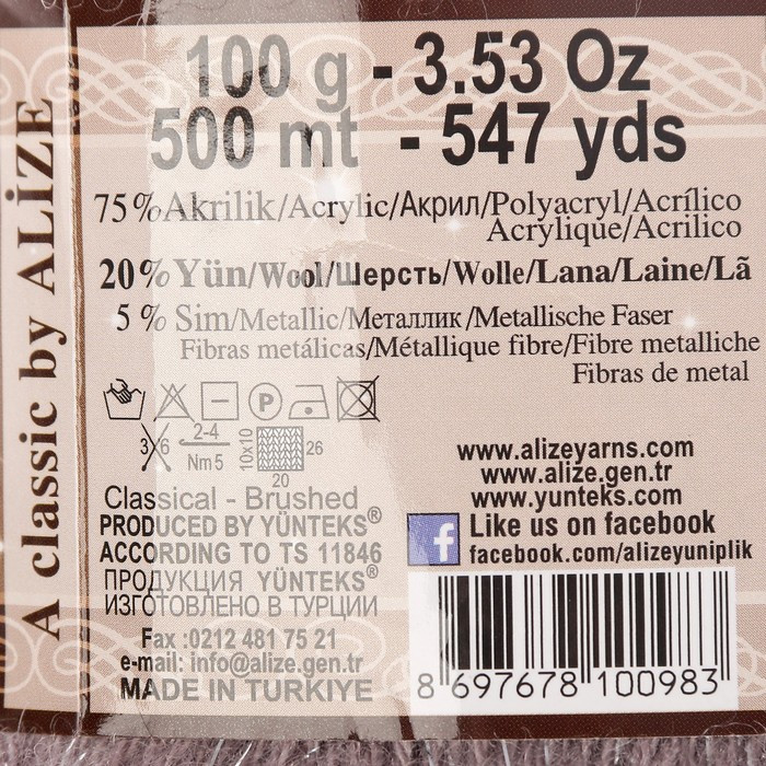 Alize Пряжа для вязания «Angora Gold Simli», 163 Серая роза