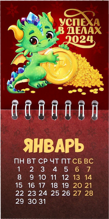 Зимнее волшебство Календарь на спирали на 2024 год «Успеха в делах»В данный момент этот товар отсутствует в продаже. Возможно, у нас найдется аналогичный или похожий товар здесь. Серия: Символ года 2024 Календарь на спирали будет радовать целый год своим ярким дизайном. Календарь с отрывными листами удобно использовать в офисе либо дома на рабочем столе, можно хранить его в сумке, чтобы всегда был под рукой. Он поможет вам с легкостью планировать нужные дела и не забывать о важных датах. Календарь с перекидными листами — нужный и практичный предмет, без которого просто не обойтись на работе и дома. Такой новогодний сувенир станет отличным подарком близкому человеку. |