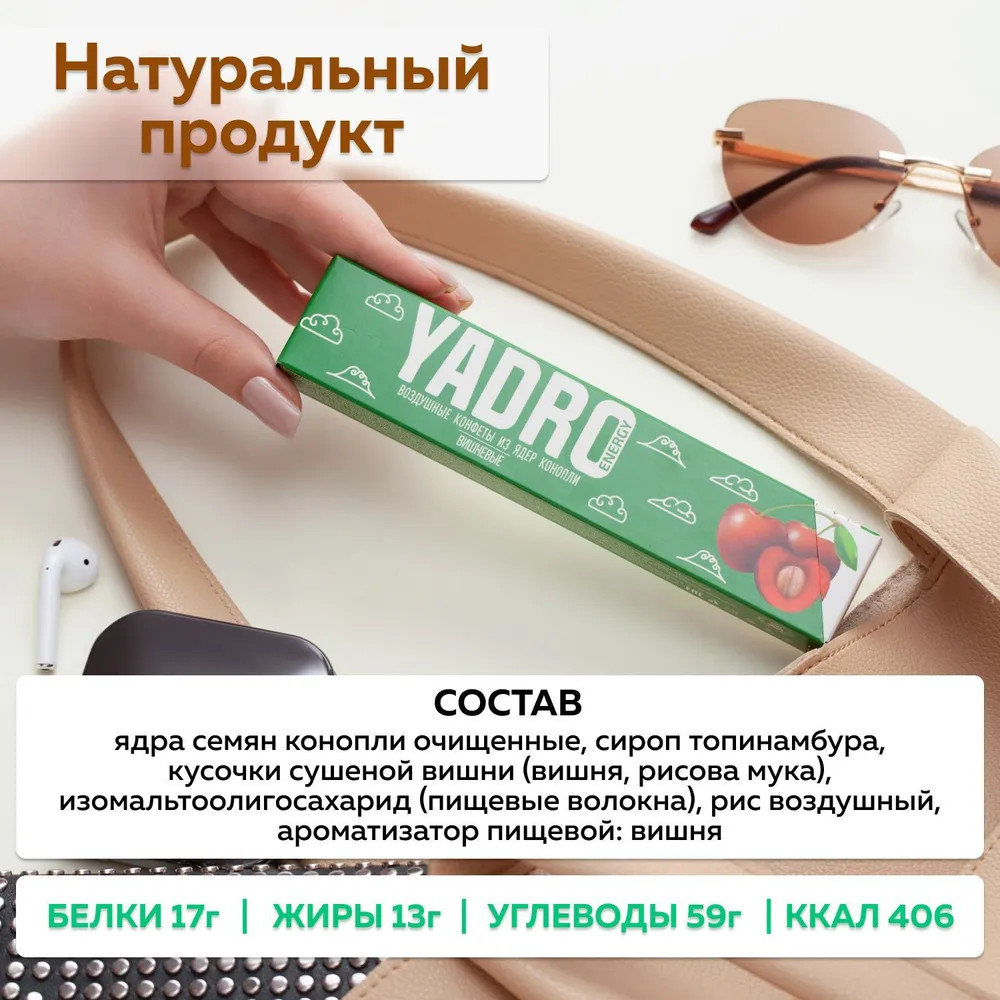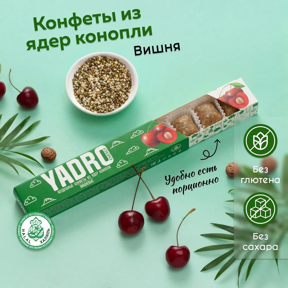 Yadro Energy Конфеты из ядер конопли «Вишня»
