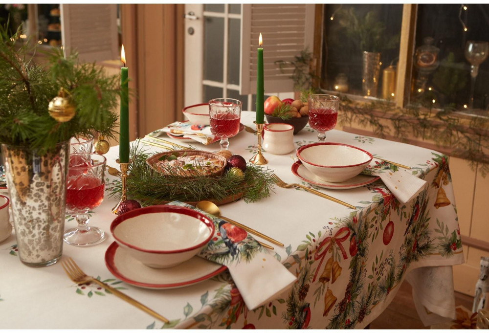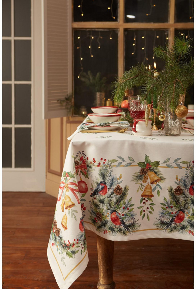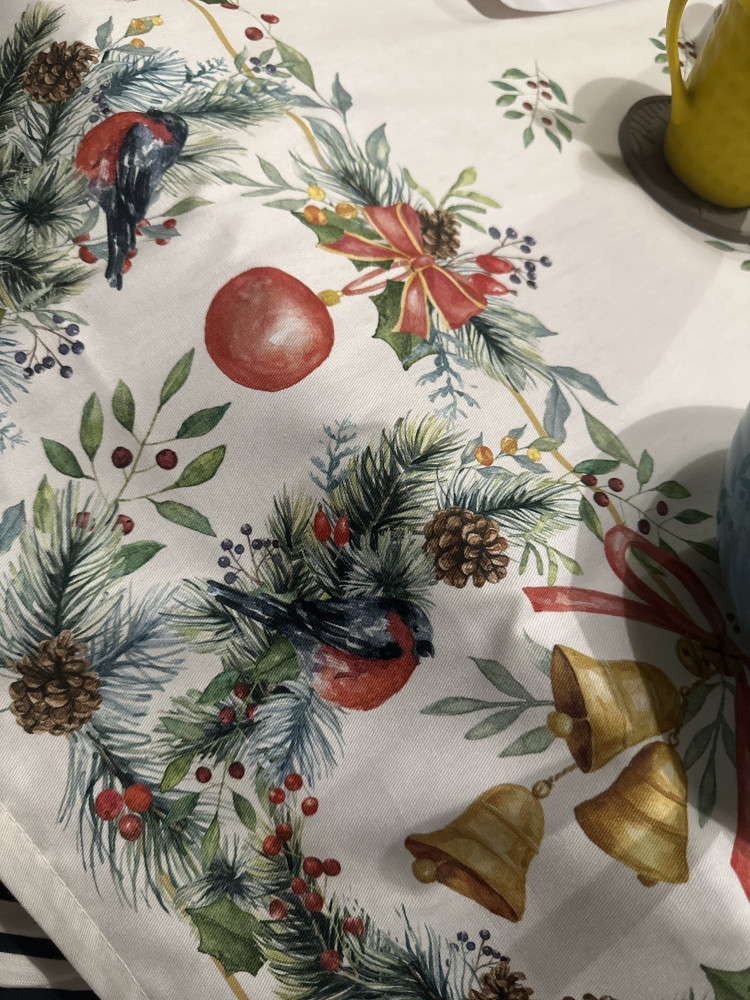 Замечательная скатерть! Прямо на новогодний стол! Заказывала другую ( подешевле), но, раскрыв её - не понравилась. Рисунок не такой, как на фото. А эта чудесная!!! Уютная, нарядная, праздничная!!!