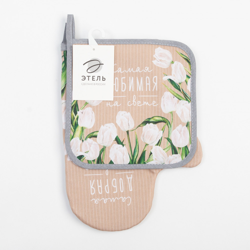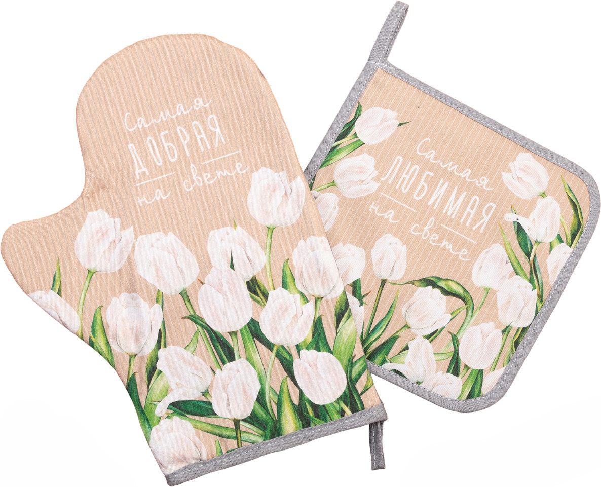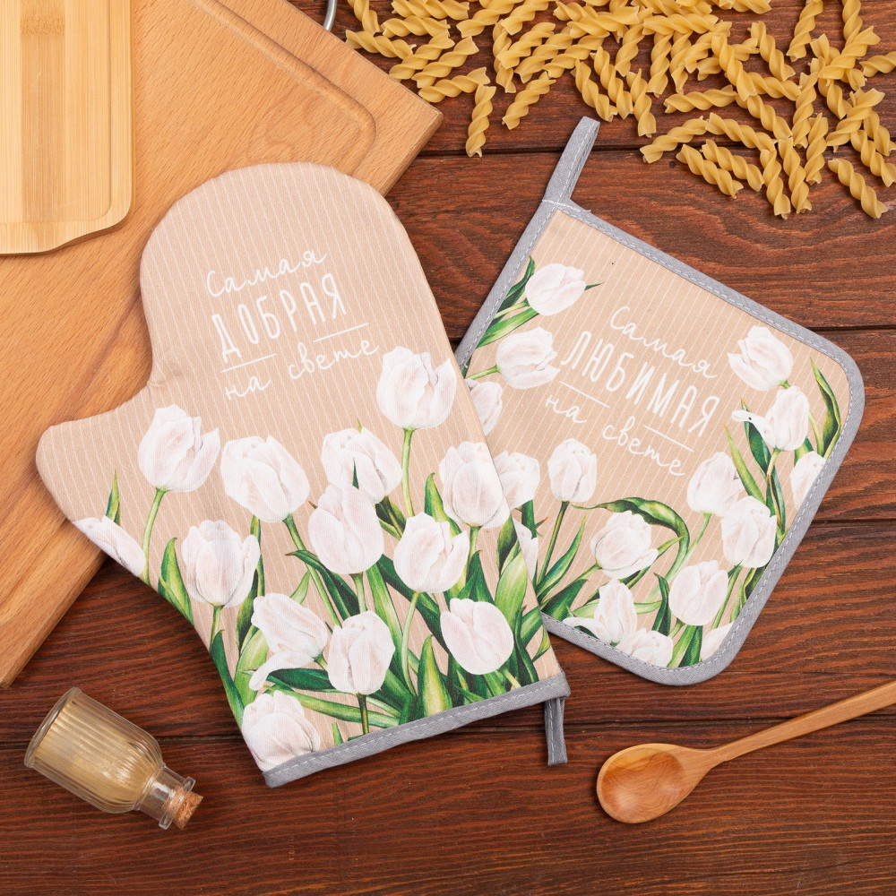 Кухонный набор станет отличный подарок для хорошей хозяйки. Простой элегантный современный дизайн сделает вашу кухню более привлекательным. В комплект входят прихватка и рукавица, которые защитят руки и кухонную столешницу от горячей посуды. Прихватки для кухни незаменимый помощник любой хозяйке. На нижней части прихватки располагается удобная петелька, которая позволяет повесить ее на крючок, обеспечивая удобное хранение и экономию места на полках и в шкафу. Кухонный текстиль можно использовать каждый день для приготовления горячей еды или как украшение столовой, кухни, дачи или сада, загородного дома.