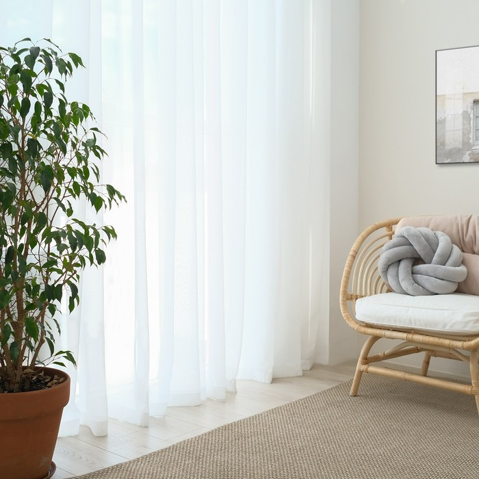 Тюль подходит для интерьера: в гостиную, кухню, столовую, спальню, детскую, кабинет. Тюль поможет в защите помещения от солнца и создании легкой и непринужденной атмосферы. Прозрачную вуаль можно повесить не только отдельно, но также можно сочетать с плотными шторами для стильного и яркого внешнего вида. Готовый тюль отшит на шторной ленте, которую можно подстраивать под размер окна. Тюль крепится на крючки.
