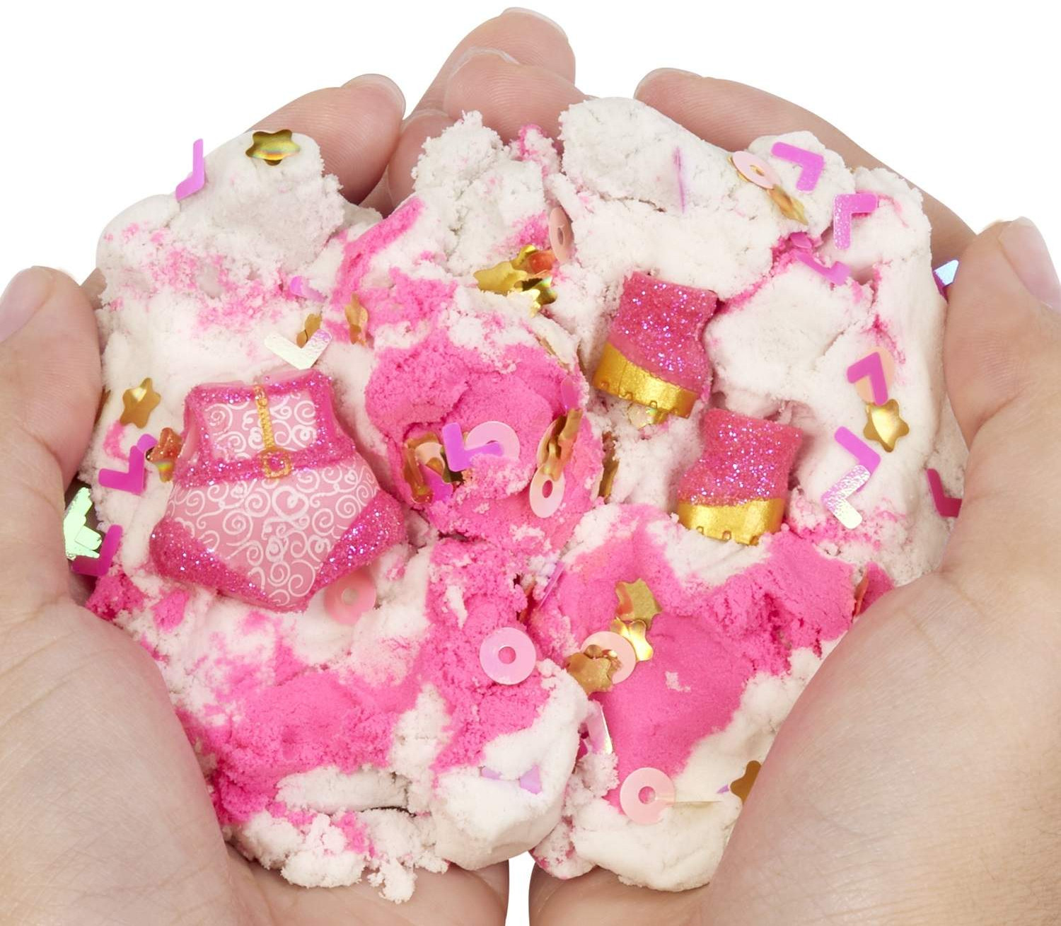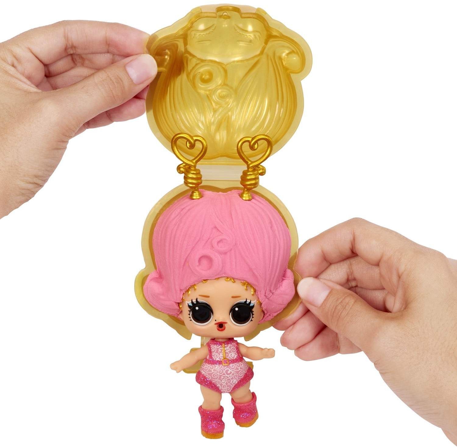 Находи сюрпризы в яркой прическе куколки! Просто разломи аккуратно уложенные волосы из кинетического песка! Там тебя будут ждать яркие блестки и модные аксессуары. Но это не все. Помести песок в форму вместе с героиней, и новая прическа преобразит ее образ! Собери все 9 героинь L.O.L Surprise Squish sand Magic Hair!