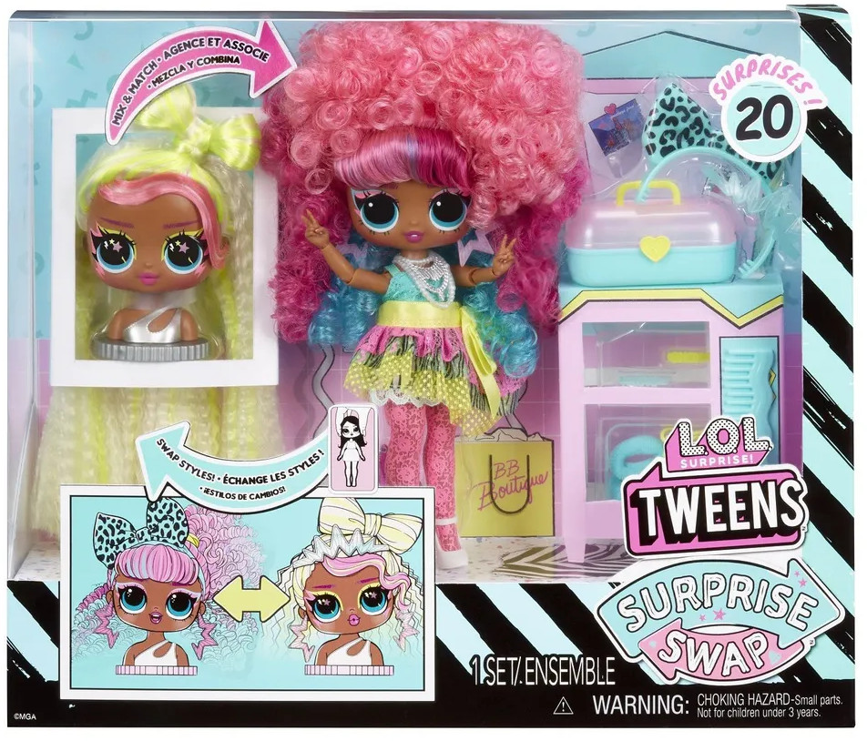 Встречай коллекцию L.O.L Surprise Tweens Swap со сменными образами! Это младшие сестры кукол OMG и старшие сестренки мини-кукол L.O.L Surprise, которые могут изменить свою внешность и эмоцию до неузнаваемости. У кукол Swap два совершенно разных образа в одном наборе, которые позволяют экспериментировать с их внешностью и делать еще больше причесок.