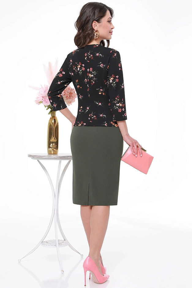 Костюм прошит качественно. Ткань юбки и блузки разная.