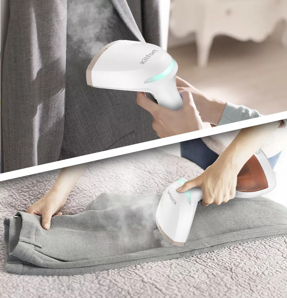 Ручной отпариватель Kitfort КТ-954-1 обладает такими достоинствами, как современный дизайн, компактность и лёгкий вес. Ручной отпариватель удобно брать с собой в поездки, он незаменим для оперативного приведения одежды в порядок.