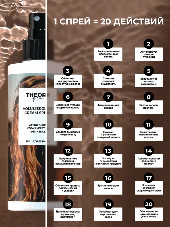 Theory Спрей для волос термозащитный «Volume and glow cream spray»В данный момент этот товар отсутствует в продаже. Возможно, у нас найдется аналогичный или похожий товар здесь. Спрей для волос термозащитный Theory– это удобный и необходимый элемент в наборе косметики для волос. С помощью термозащитного спрея можно не только защитить свои волосы от повреждений во время укладки с помощью утюжков или фена, но и осуществлять уход за волосами в целом. Средство обеспечивает комплексный уход за волосами. Помогает восстановить структуру, вернуть блеск и мягкость волос. |