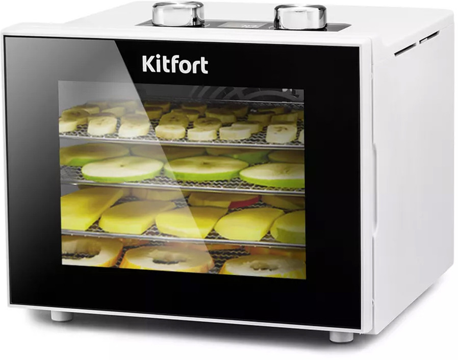 Благодаря компактному корпусу и оптимальному количеству поддонов сушилка для овощей и фруктов не займёт много места у вас на кухне. А через встроенное прозрачное окошко из закалённого стекла вы легко сможете наблюдать за процессом сушки.