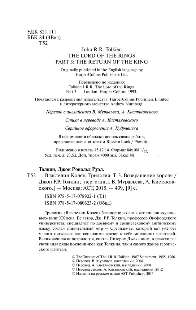 Властелин Колец. Возвращение короляВ данный момент этот товар отсутствует в продаже. Возможно, у нас найдется аналогичный или похожий товар здесь. Трилогия «Властелин Колец» бесспорно возглавляет список «культовых» книг XX века. |