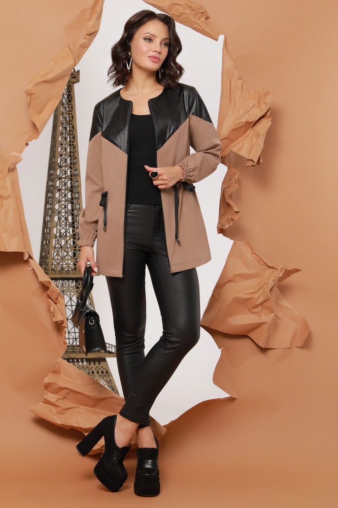 DStrend Ветровка с кокеткой из экокожи женская