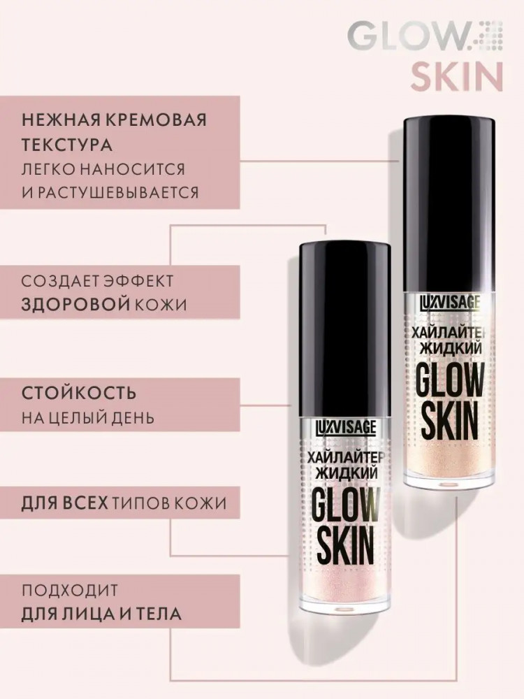 LuxVisage Хайлайтер для лица «Glow Skin», оттенок 10 Pearly rose