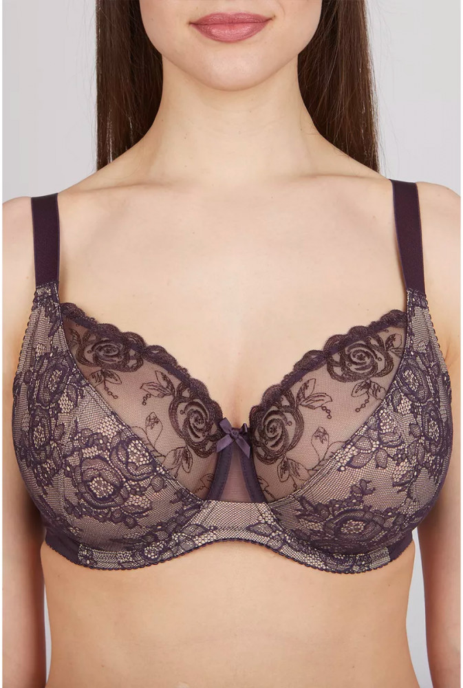 Красиво собирает грудь, интересно смотрится. Кружева не колятся. Цвет красивый, фиолетово-коричневый.