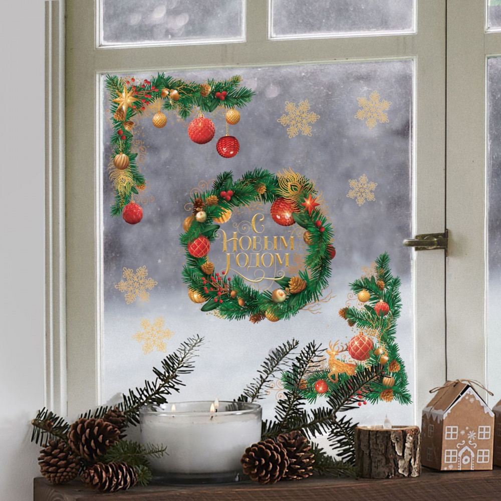 Арт Узор Наклейки виниловые «Новогодний венок»-40% +8