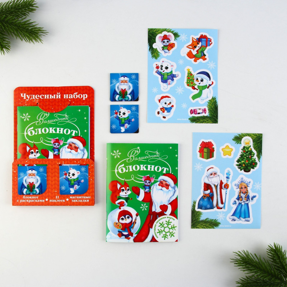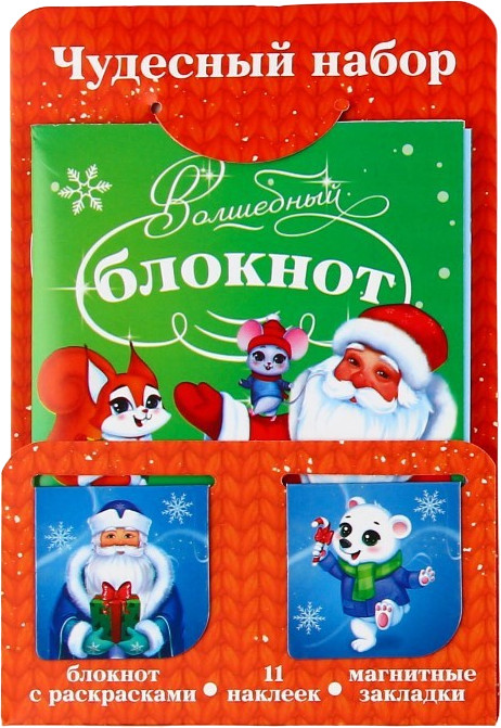 блокнот, 2 листа наклеек, 2 магнитные закладки