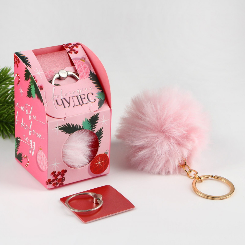 Один подарок — хорошо, а подарочный набор — еще лучше! Небольшой подарочный набор станет хорошим вариантом символического презента на новогодние праздники. В набор входят брелок-пушистик и кольцо-подставка для телефона. Подарите положительные эмоции, оставляют приятные впечатления, и хорошее настроение.