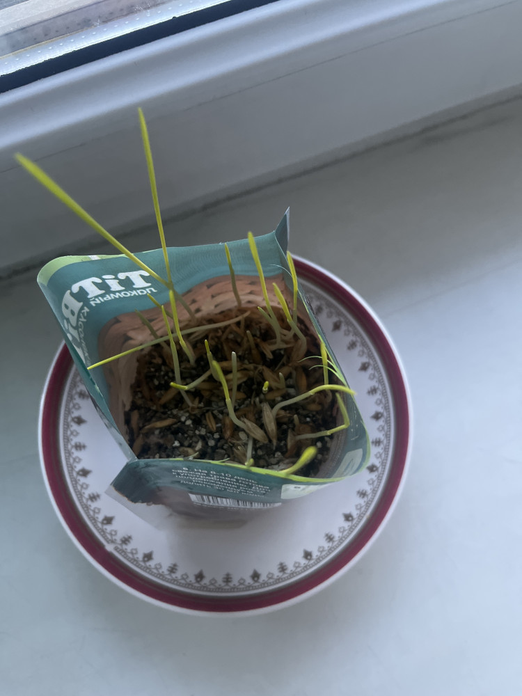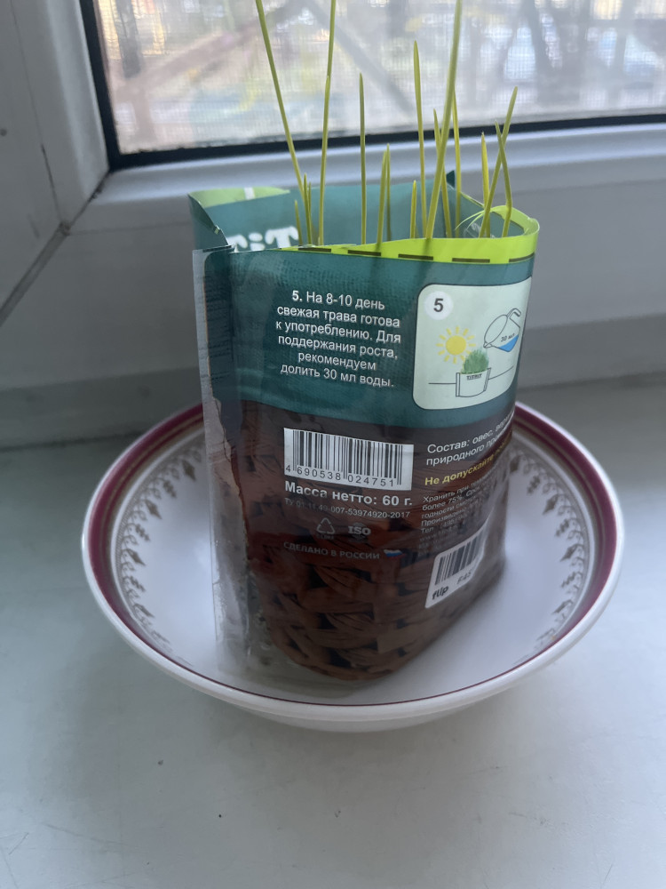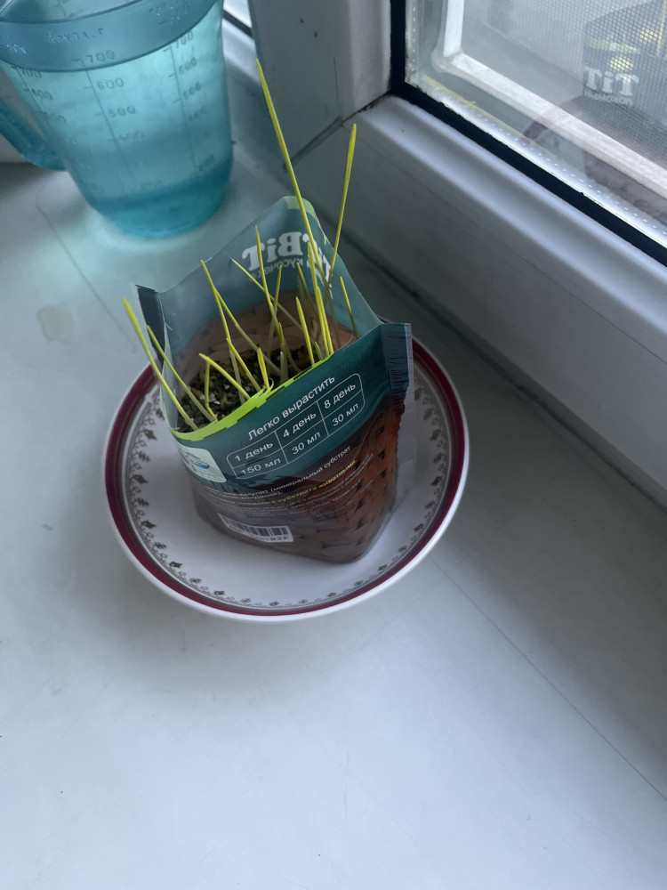 Травка выросла достаточно быстро и густо, но мой кот отказался её кушать, почему отказался, он не сказал...