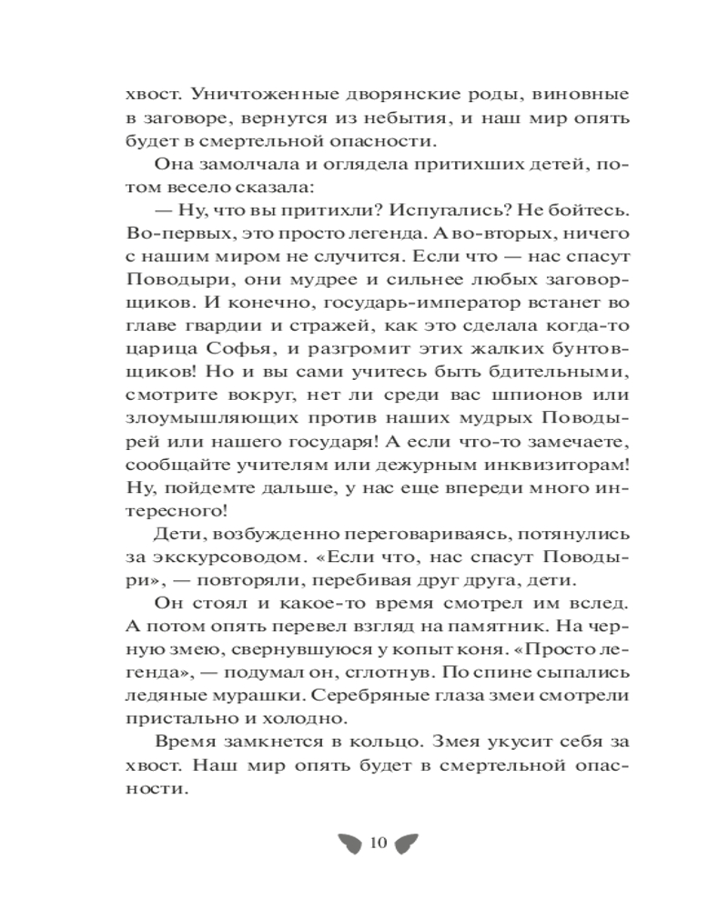 💳 Оплатить за товар можно при получении 🇰🇿 Есть бесплатная доставка по Казахстану от 1 дня 🎁 Копите бонусы с каждой покупки Серия: Red Violet. Темные миры Мир, в котором живет пятнадцатилетний Андрей, похож на наш. Только вместо Петра на престол взошла царица Софья: магические способности у нее оказались сильнее, чем у брата. А вместе с ней власть захватили вороны Инквизиции. Потому и город, заложенный на Неве, называется Софиенград, а его символ (Медная всадница) — памятник Софье. Бытует легенда, что скульптор разместил под копытами коня невидимую змею, и тот, кто сможет ее увидеть, повернет время вспять. Андрей мог только мечтать о магии, но, проходя мимо памятника, он вдруг наткнулся взглядом на пристальные и холодные серебряные глаза змеи, и теперь убежать от судьбы уже не получится... |