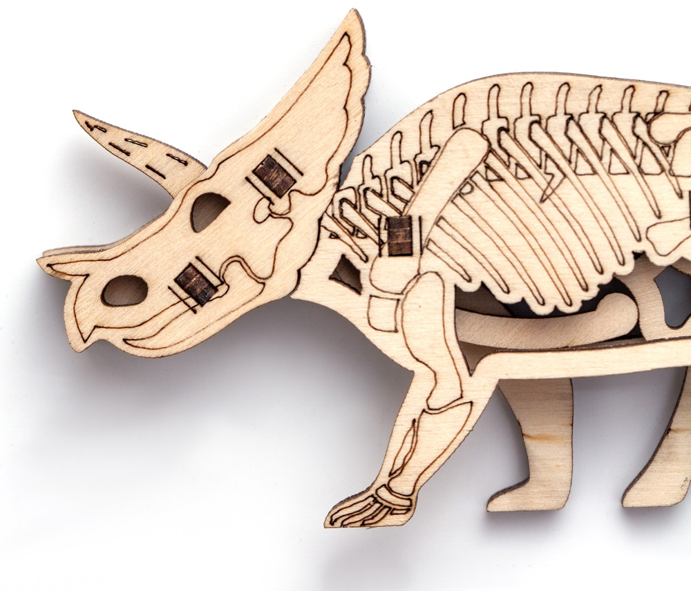 Drovo Конструктор деревянный «Трицератопс Брон»В данный момент этот товар отсутствует в продаже. Возможно, у нас найдется аналогичный или похожий товар здесь. Серия: Постройки и домики Деревянный конструктор «Трицератопс Брон» станет замечательным сувениром для мальчика и девочки и облегчит вам поиска подарка для ребенка и любителям раскопок и археологии. Ведь это не только крутая игрушка динозавра, но еще и необычная сборная модель в формате 3D пазла. Если динозавра погладить по спинке, то он весело помашет вам головой. Такая игрушка может быть и антистрессом. Фанера приятно пахнет. Аккуратно вырезанные детали фанерной модели Drovo без заусенцев обеспечивают гладкий материал и тщательно передают внешний вид героя. |