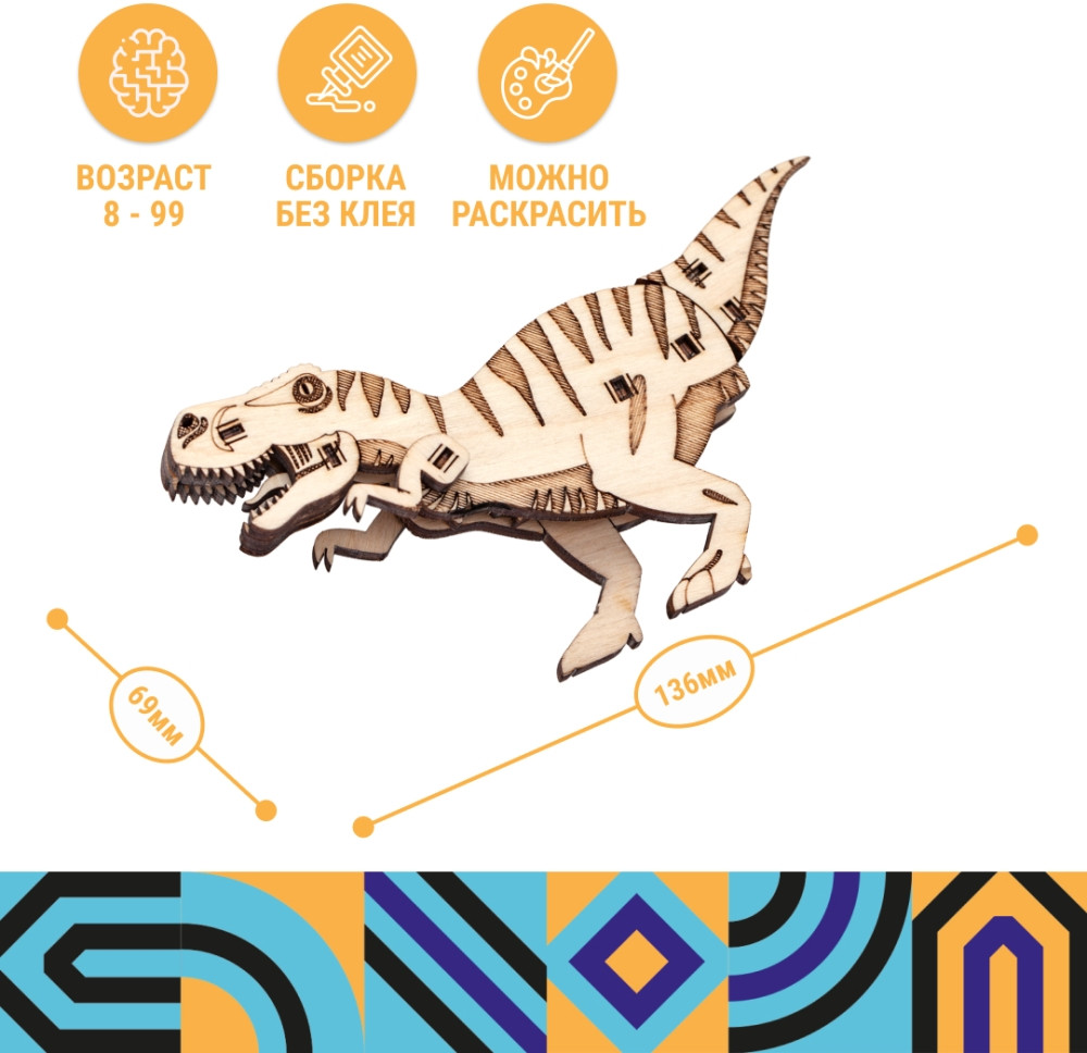 Drovo Конструктор деревянный «Тираннозавр Клык»В данный момент этот товар отсутствует в продаже. Возможно, у нас найдется аналогичный или похожий товар здесь. Серия: Постройки и домики Деревянный конструктор «Тираннозавр Клык» станет замечательным сувениром для мальчика и девочки и облегчит вам поиска подарка для ребенка. Ведь это не только крутая игрушка динозавра, но еще и необычна сборная модель в формате 3D пазла. Если динозавра подергать за хвост, то он весело пошевелить своими маленькими лапками. Грозный и милый зверь. Аккуратно вырезанные детали фанерной модели Drovo без заусенцев обеспечивают гладкий материал и тщательно передают внешний вид героя. |