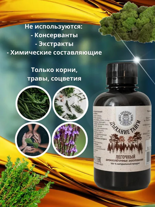 Древний лекарь Бальзам «Дыхание тайги» легочныйсмягчает кашель выводит мокроту приятный вкус состав для бронхита В данный момент этот товар отсутствует в продаже. Возможно, у нас найдется аналогичный или похожий товар здесь. Данный сбор трав обладает мощной целительной силой. Состав и правильное количество компонентов не просто дополняют, а весьма сильно усиливают действие друг друга. |