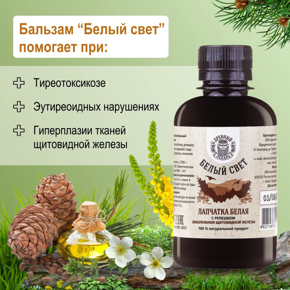 Древний лекарь Бальзам «Лапчатка белая с репешком»-30% +42 содержит лапчатку приятный вкус помогает щитовидке успокаивает