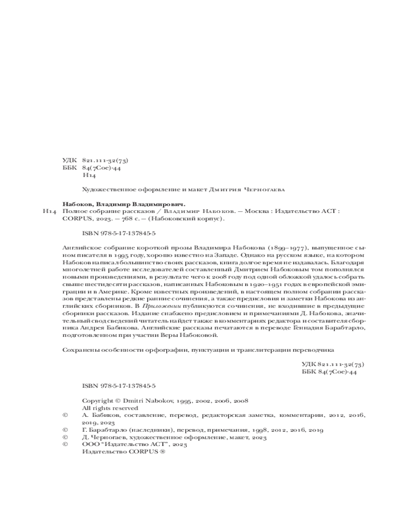 💳 Оплатить за товар можно при получении 🇰🇿 Есть бесплатная доставка по Казахстану от 1 дня 🎁 Копите бонусы с каждой покупки Серия: Набоковский корпус Английское собрание короткой прозы Владимира Набокова (1899-1977), выпущенное сыном писателя в 1995 году, хорошо известно на Западе. Однако на русском языке, на котором Набоков написал большинство своих рассказов, книга долгое время не издавалась. |
