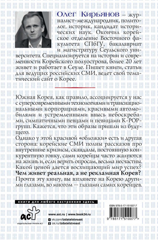 💳 Оплатить за товар можно при получении 🇰🇿 Есть бесплатная доставка по Казахстану от 1 дня 🎁 Копите бонусы с каждой покупки Серия: Экономические миры Южная Корея, как правило, ассоциируется у нас с суперсовременными технологиями и транснациональными корпорациями, красивыми автомобилями и устремленными ввысь небоскребами, симпатичными певцами и певицами K-POP групп. Кажется, что эти образы пришли из будущего. |