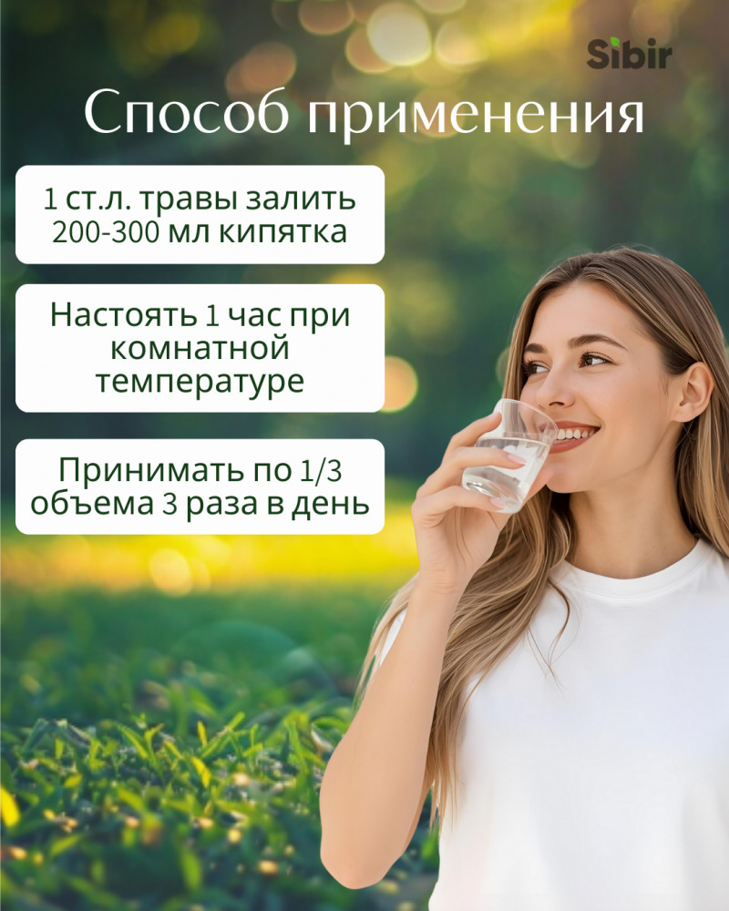 Способ применения: 1 ст.л. залить 0,2-0,3 л. кипятка, настоять 1 час при комнатной температуре. Применять по 1/3 от полученного объема 3 раза в день, каждую порцию процеживая через сито. |