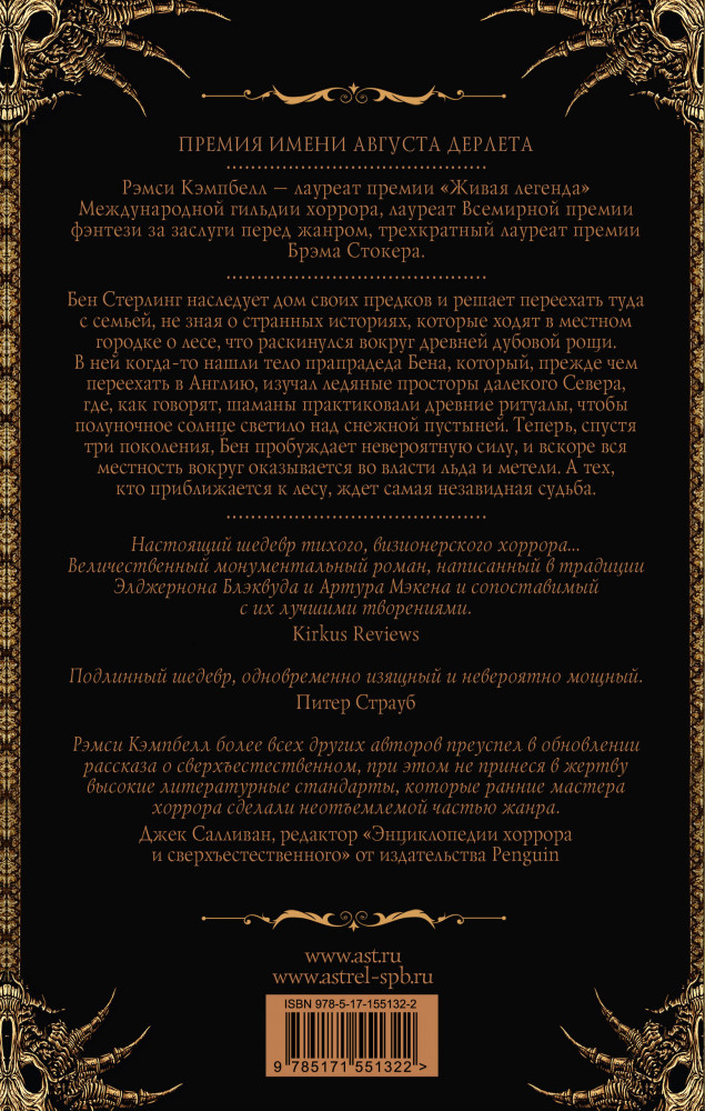 💳 Оплатить за товар можно при получении 🇰🇿 Есть бесплатная доставка по Казахстану от 1 дня 🎁 Копите бонусы с каждой покупки Серия: Легенды хоррора Бен Стерлинг наследует дом своих предков и решает переехать туда с семьей, не зная о странных историях, которые ходят в местном городке о лесе, что раскинулся вокруг древней дубовой рощи. В ней когда-то давно нашли тело прапрадеда Бена, который, прежде чем переехать в Англию, изучал ледяные просторы далекого Севера, где, как говорят, шаманы практиковали древние ритуалы, чтобы полуночное солнце светило над снежной пустыней. Теперь, спустя три поколения, Бен пробуждает невероятную силу и вскоре вся местность вокруг оказывается во власти льда и метели. А тех, кто приближается к лесу, ждет самая незавидная судьба. |
