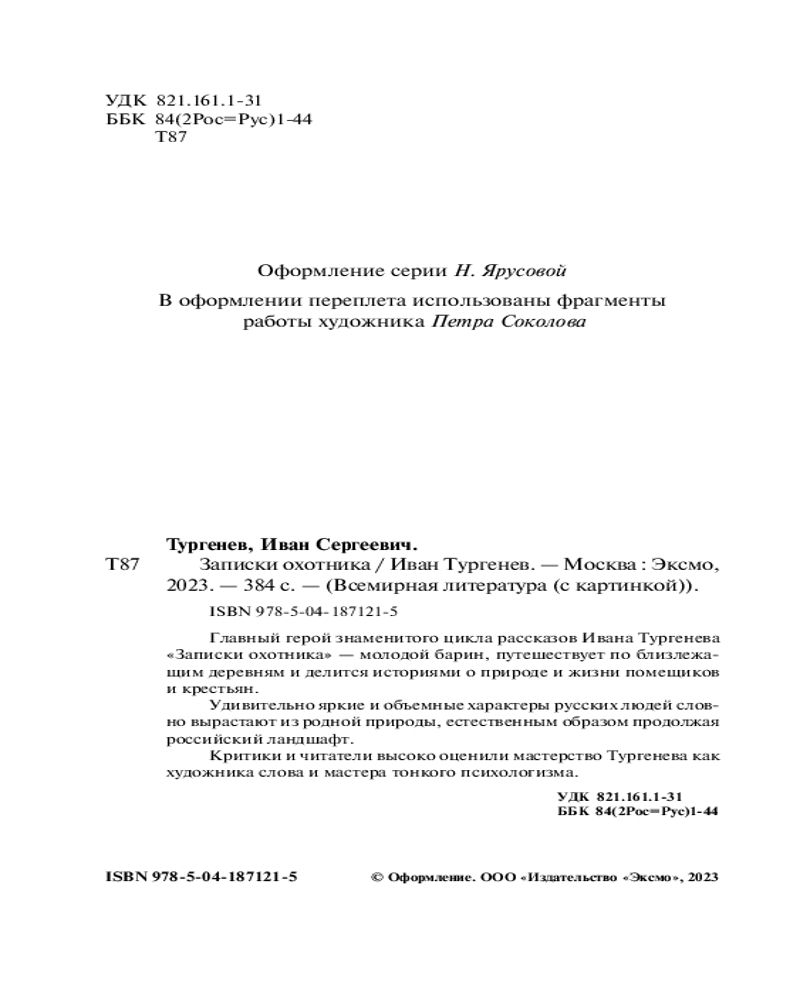 💳 Оплатить за товар можно при получении 🇰🇿 Есть бесплатная доставка по Казахстану от 1 дня 🎁 Копите бонусы с каждой покупки Серия: Всемирная литература (новое оформление) Главный герой знаменитого цикла рассказов Ивана Тургенева «Записки охотника» — молодой барин, путешествует по близлежащим деревням и делится историями о природе и жизни помещиков и крестьян. Удивительно яркие и объемные характеры русских людей словно вырастают из родной природы, естественным образом продолжая российский ландшафт. Критики и читатели высоко оценили мастерство Тургенева как художника слова и мастера тонкого психологизма. |