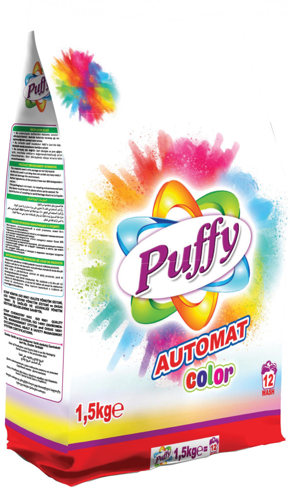 Вся продукция бренда «PUFFY» производится в Турции (завод производитель «ETAP») и соответствует самым современным стандартам качества и безопасности. В ассортименте стиральные порошки и жидкие средства для стирки, кондиционеры для белья, средства для мытья посуды и многое другое. Вся продукция специально разработана и протестирована для людей с такими проблемами, как аллергия и астма. Средства для стирки и уборки одобрены дерматологами и врачами.