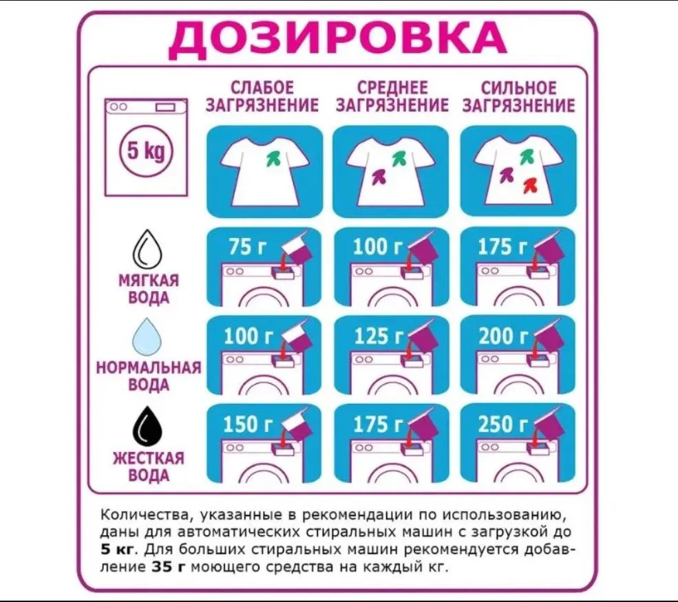 Безопасный — без фосфатов и хлорных отбеливателей. Входящие в состав вещества более чем на 80 % разлагаются в природной среде. Эффективный — активные вещества глубоко проникают в ткань и эффективно справляются с любыми видами загрязнений: органическими, неорганическими, застарелыми. Ваша одежда будет выглядеть так же, как в первый день после покупки. Устраняет неприятные запахи и придает одежде приятный аромат свежести. Экономичный — невысокая стоимость одной стирки.